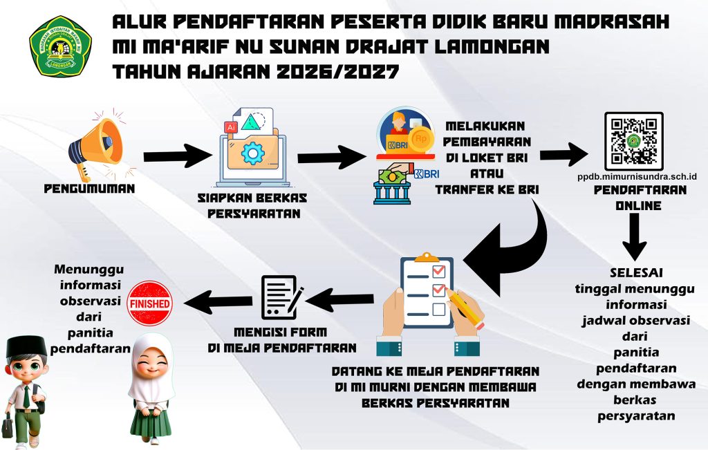Sehubungan dengan dibukanya Penerimaan Peserta Didik Baru (PPDB) MI Ma’arif NU Sunan Drajat Lamongan dengan ini kami sampaikan informasi terkait Pelaksanaan dan Persyaratan Pendaftaran Peserta Didik Baru (PPDB) sebagai berikut: